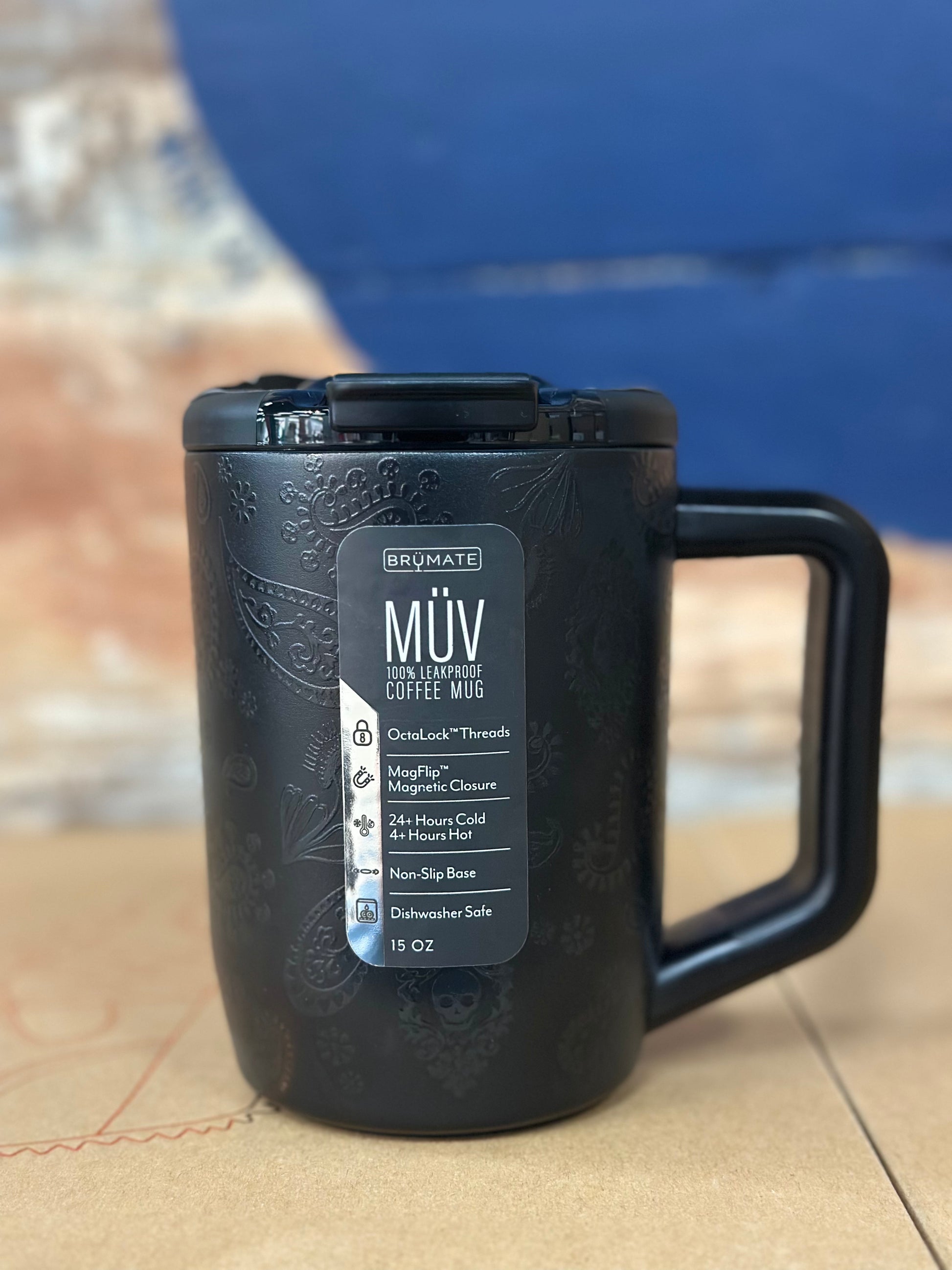 Introducing the Brümate Müv Phantom Paisley 15oz coffee mug. With its sleek design and 15oz capacity, enjoy your hot beverages in style and keep them at the perfect temperature all day. Made with durable materials, it is the perfect mug for on-the-go or at home.
